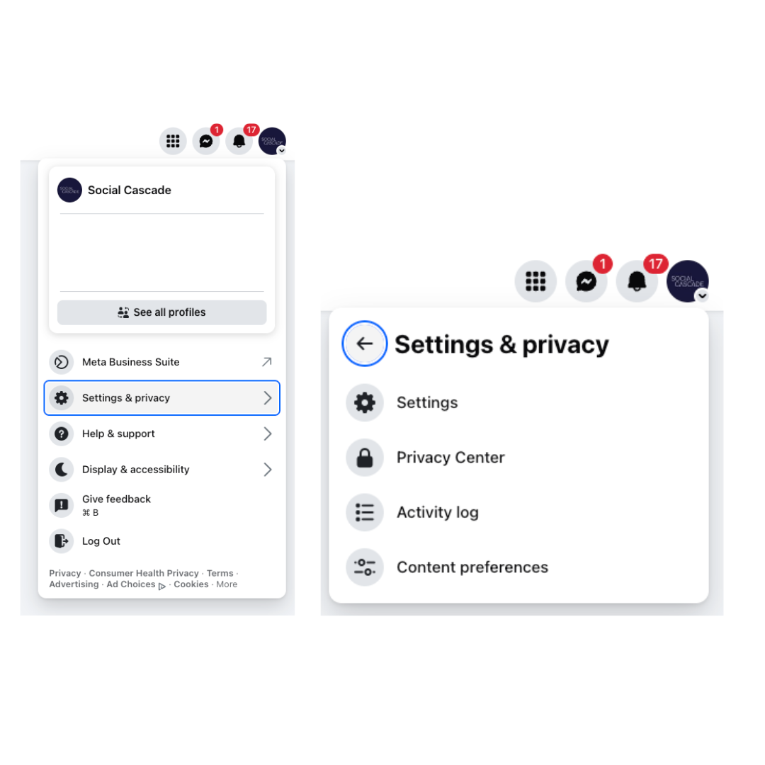 - From your Page, go to "Settings & Privacy" > "Settings".
