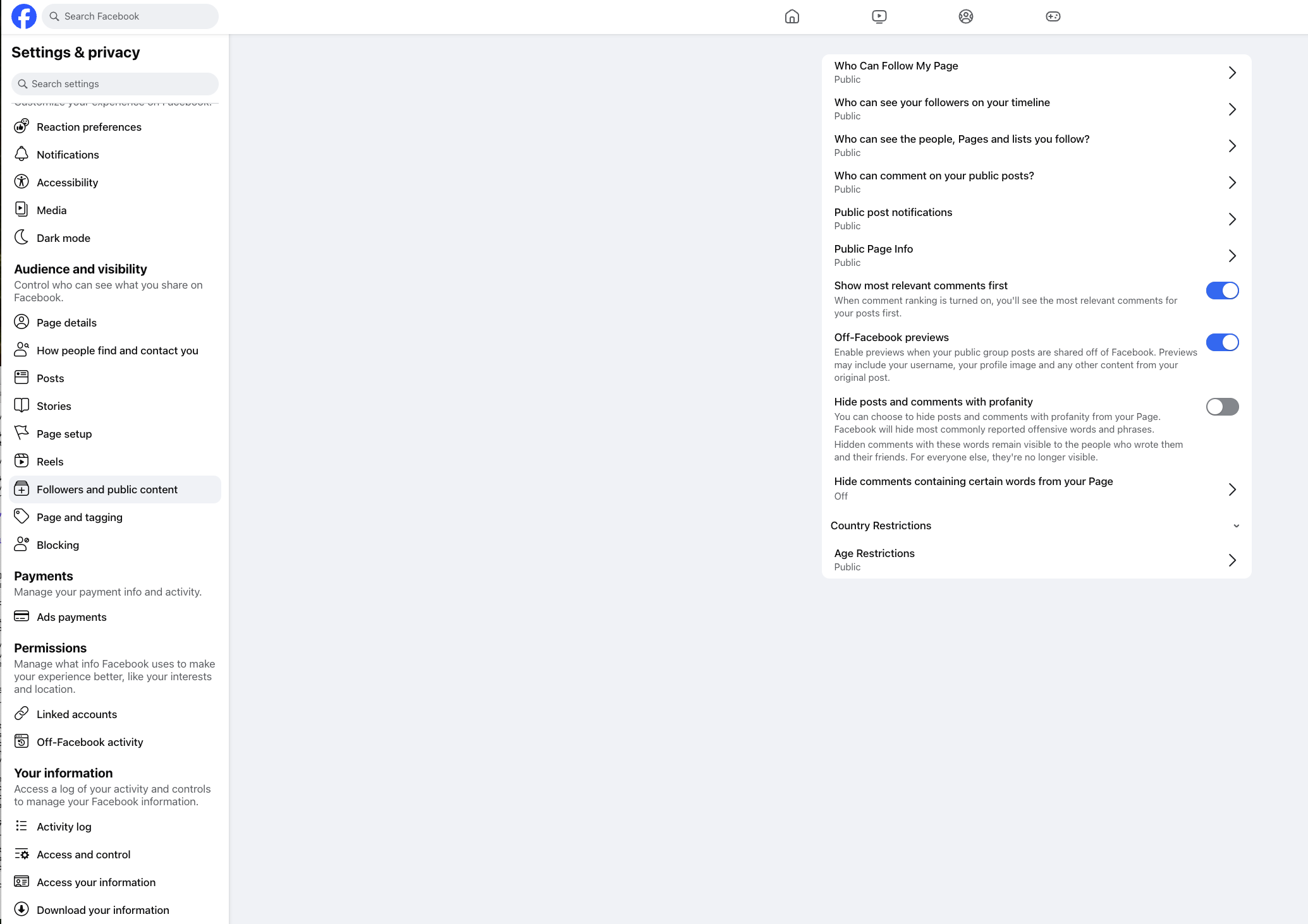 - Follow the steps above to navigate to "Followers and public content."